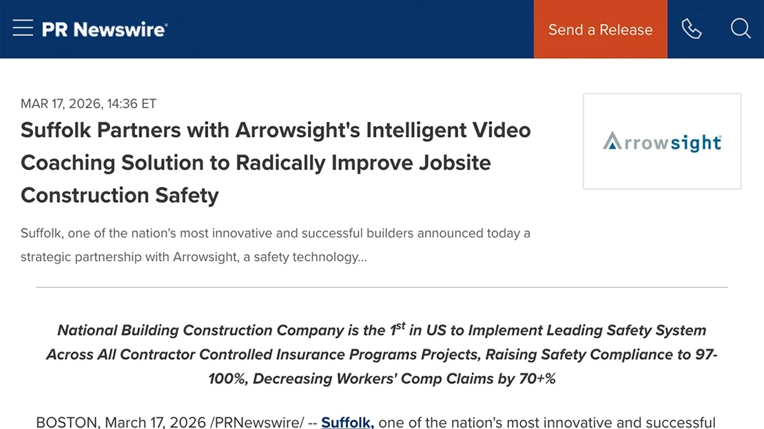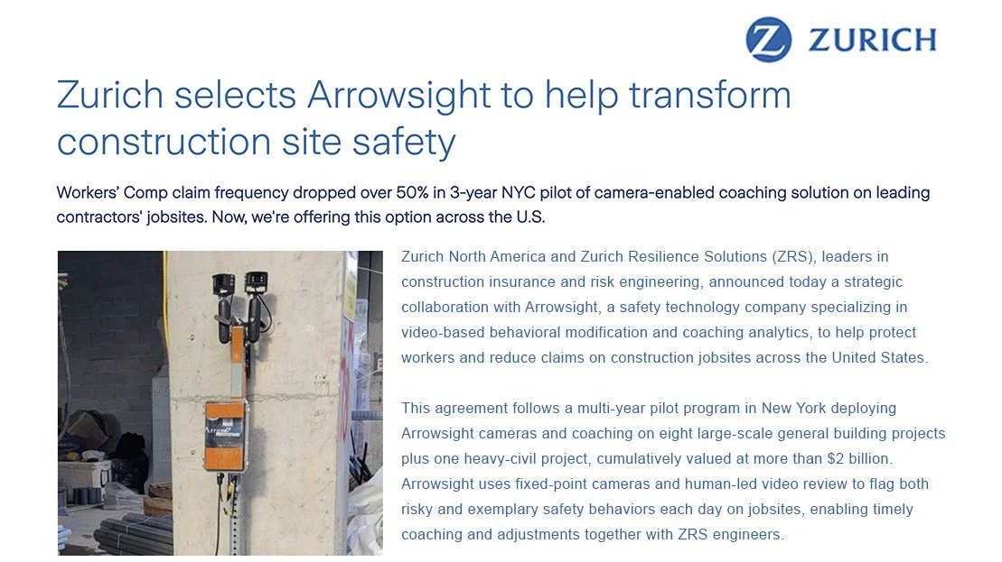 Suffolk and Zurich select Arrowsight to help transform construction site safety.