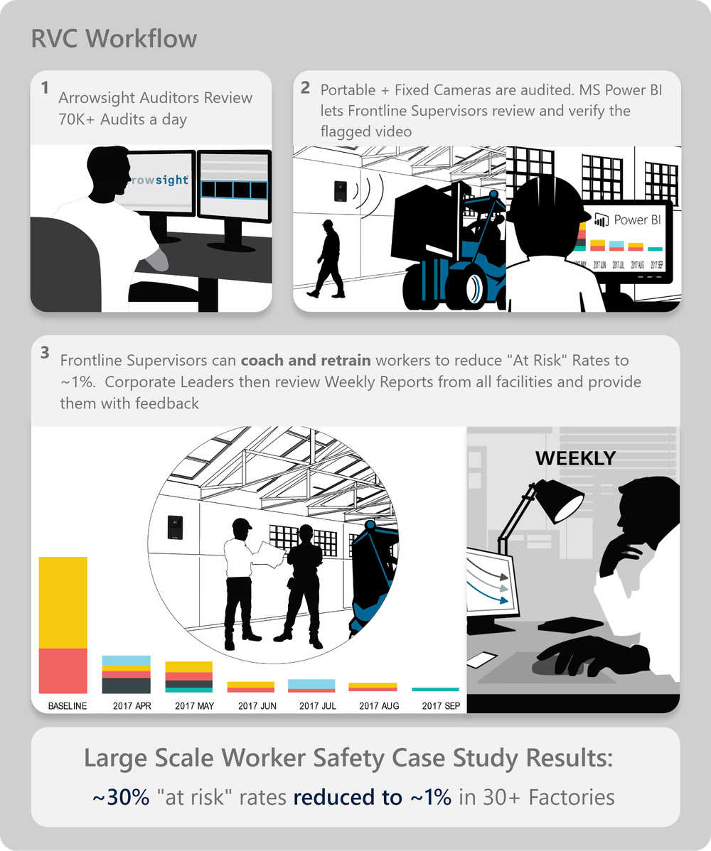Each engagement is highly customized and hands-on. We provide next-day, pre-shift reports along with a very small set of carefully curated and selected, high-impact coaching videos that highlight both positive and at-risk behaviors. This disciplined, focused methodology combined with our ongoing consulting services enables organizations to consistently achieve 97–99% compliance in critical tasks that significantly reduce risk without overwhelming client teams with excess data.